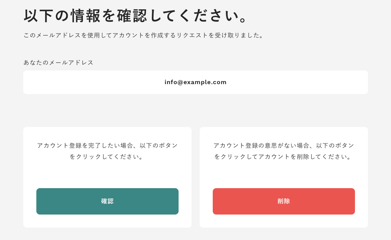[アカウントの確認/キャンセル] をクリックしてアカウントを確認します。